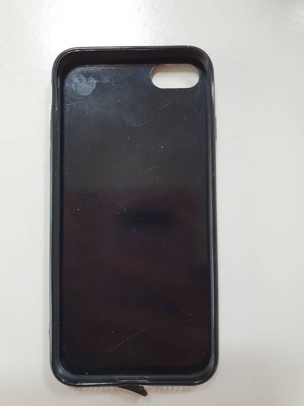 Leuk zwart telefoonhoesje met glitters. Hij heeft een beschermstukje zodat er geen vuil in aansluiting van de accu kan komen. Geschikt voor Iphone 6/7
